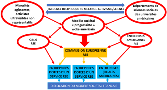 Au sein des directions des entreprises françaises, les départements en charge de la mise en œuvre de la RSE contribuent ainsi sans vraiment s’en rendre compte à soutenir l’impérialisme sociétal américain.