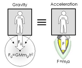 Selon lui, cette personne qui ressent une accélération n’a pas la possibilité de savoir si la cause de cette sensation est une force gravitationnelle dont elle est l’objet ou le mouvement accéléré de l’ascenseur.