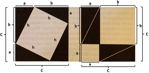 « La cause de ce théorème, c’est-à-dire la raison pour laquelle il est vrai, réside ultimement dans les propriétés géométriques du triangle rectangle, dont certaines sont précisément mises en évidence par une simple représentation géométrique dans laquelle la cause et l’effet apparaissent intriqués. »