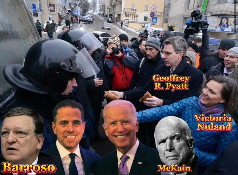 Four days earlier, Under Secretary of State Victoria Nuland handed out sandwiches to Protestants in the heart of Kiev, in the same way she might have done to the yellow vests who wanted to storm the Elysée Palace.