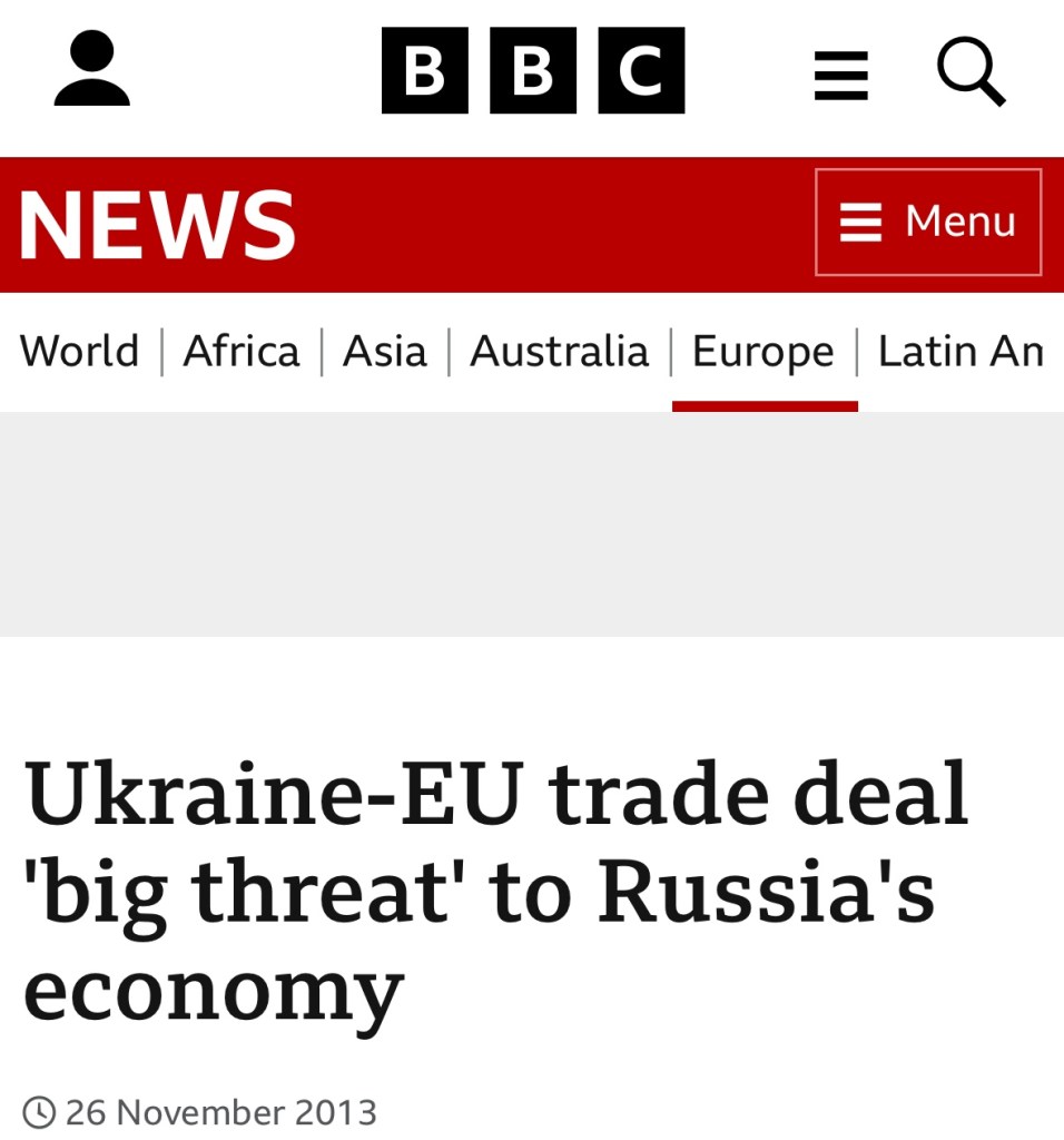 Vladimir Putin considered that “a Ukraine-EU free trade agreement would represent a major threat to Russia and lead to increased unemployment” and posed the question: “Must we strangle entire sectors of our economy so that Europe appreciates us?” (BBC, 26/11/2013).