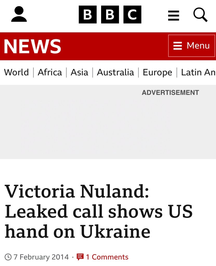 On February 7, 2014, BBC NEWS reproduced the transcript of a conversation between Victoria Nuland and the US Ambassador to Ukraine and headlined: