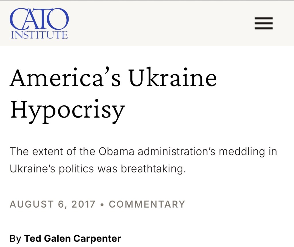 Looking back, the CATO INSTITUTE think tank stated in 2017 regarding the Maidan events of 2014: