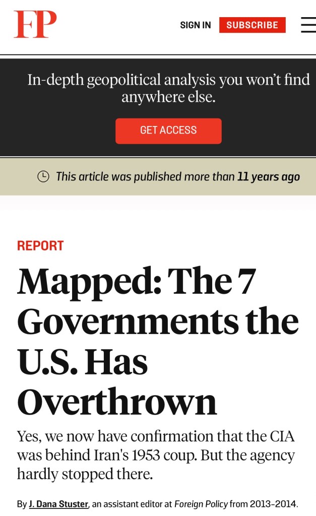 On the practical application of US » regime change » techniques, the article below lists 7 foreign governments that were overthrown by means of operations carried out by the CIA.