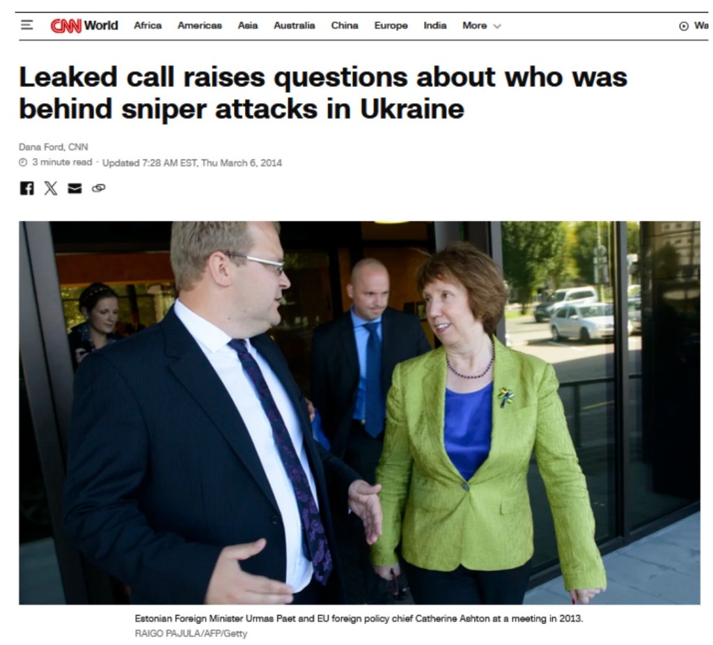 In that call, Paet said he was told that the snipers responsible for the killings of police and civilians in Kiev last month were protest provocateurs rather than supporters of then-President Viktor Yanukovych.