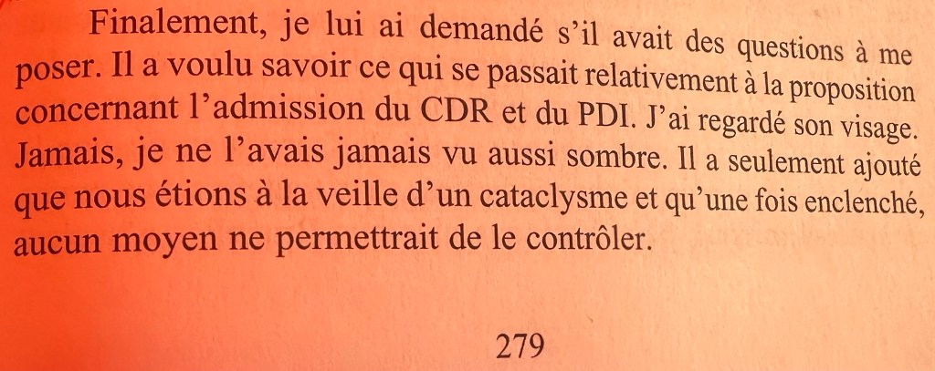 “I had never seen him so somber. He simply added that we were on the brink of a cataclysm and that, once triggered, no means would be able to control it.”